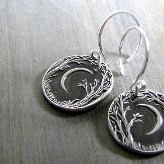 Boucles d’oreilles pendantes vintage argent lune – Léna