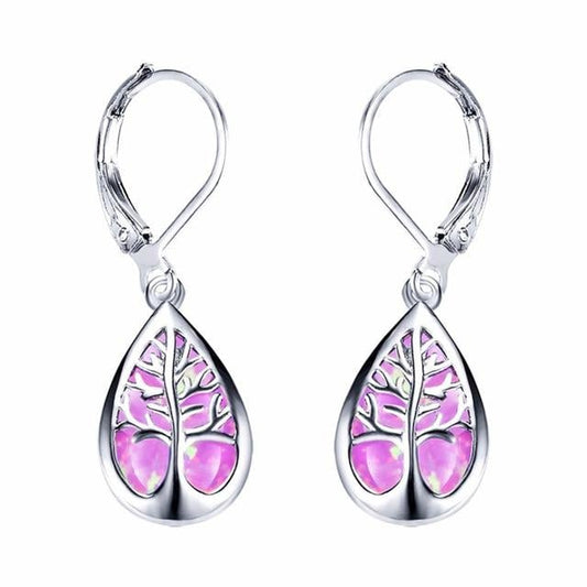 Boucles goutte arbre de vie argent pierres bleues – Lila