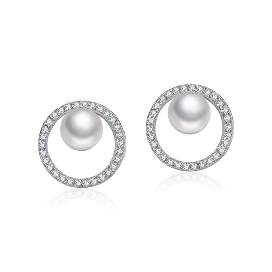 Clous d’oreilles cercle cristal perle argent – Lila