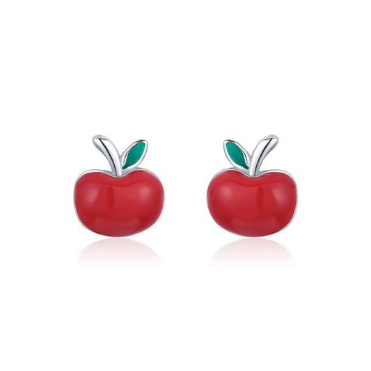 Clous d’oreilles mini pomme résine rouge argent – Lila