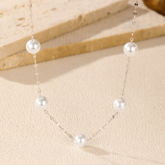 Collier pendentif ondulé et boucles d’oreilles perles plaqué or – Lise