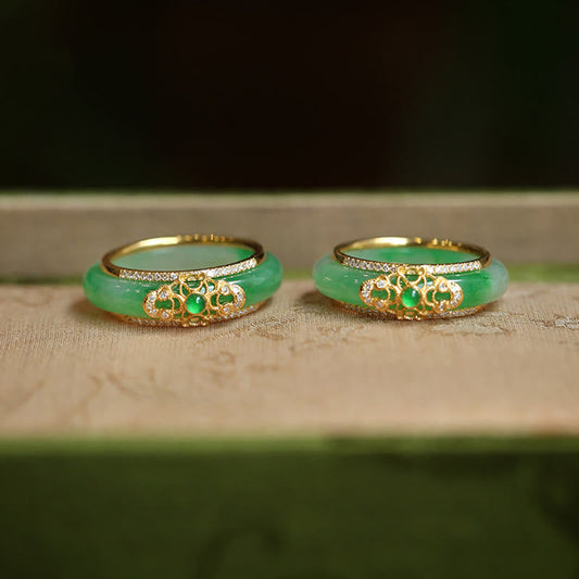 Bague plaqué or calcédoine verte motifs dorés – Léo