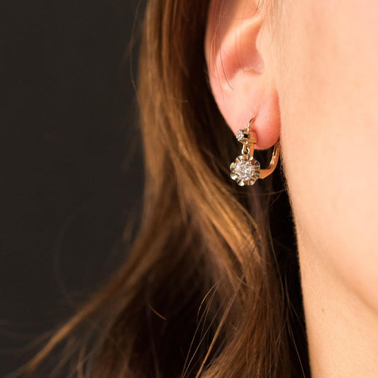 Boucles d'Oreilles Vintage en Or et Argent avec Zirconia