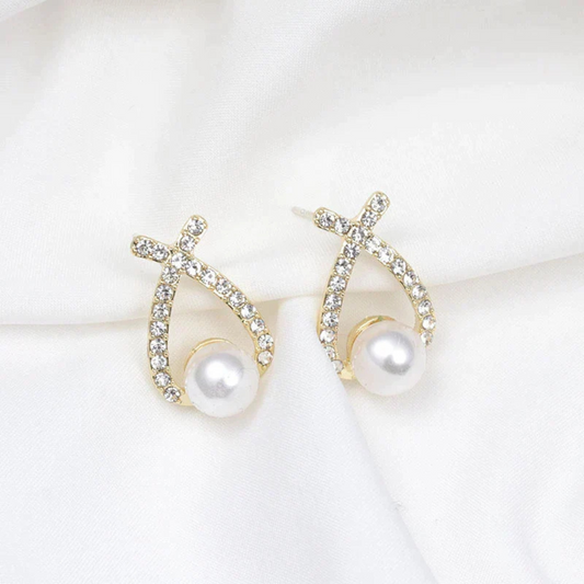 Boucles d'Oreilles en Perles avec Cristaux Étincelants Argent
