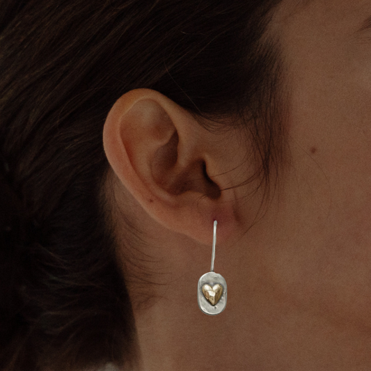 Boucles d'Oreilles Argentées avec Cœur Doré Vintage
