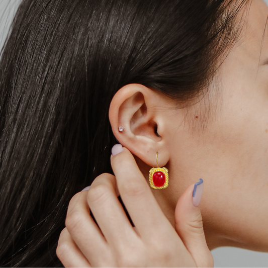 Boucles d'oreilles vintage dorées avec pierre précieuse rouge plaqué or