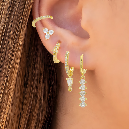 Set de Boucles d’Oreilles Pendantes Dorées Élégantes