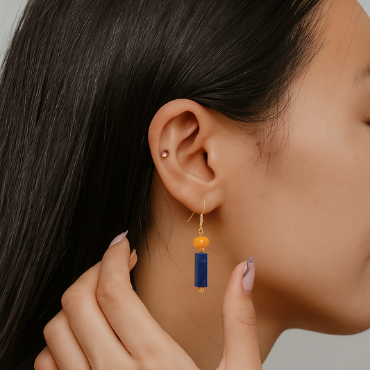 Boucles d'oreilles bleus lapis lazuli plaqué or