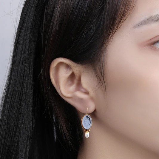 Boucles d'oreilles gouttes vintage Cameo avec perle plaqué or