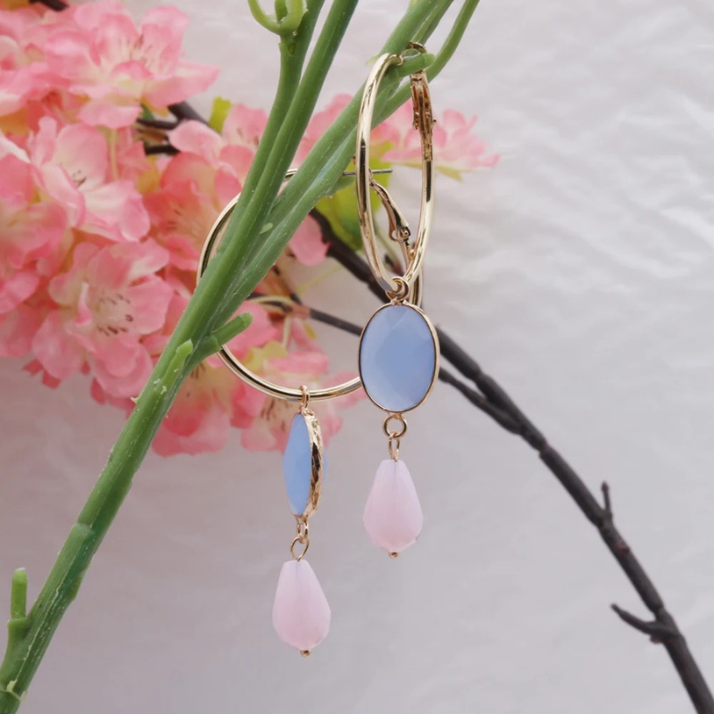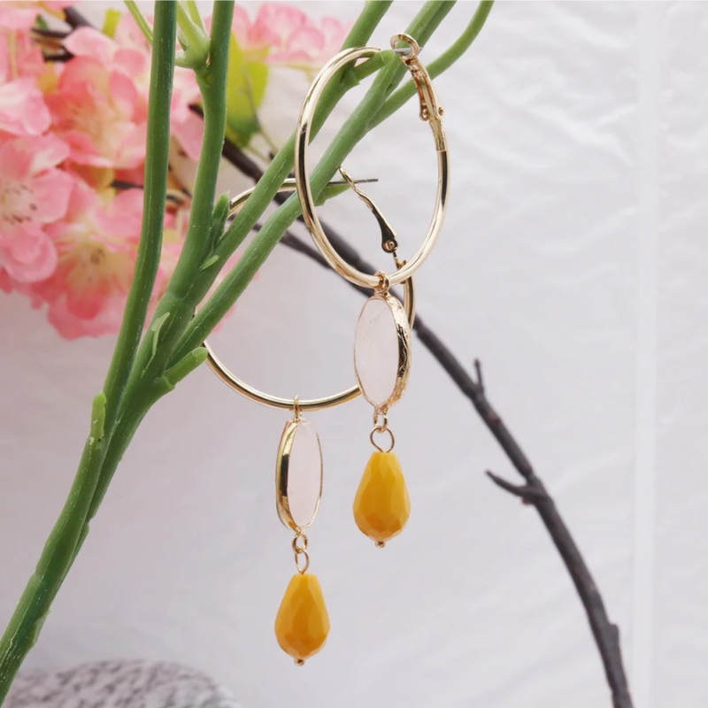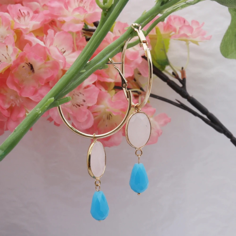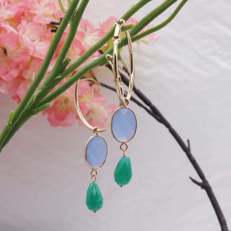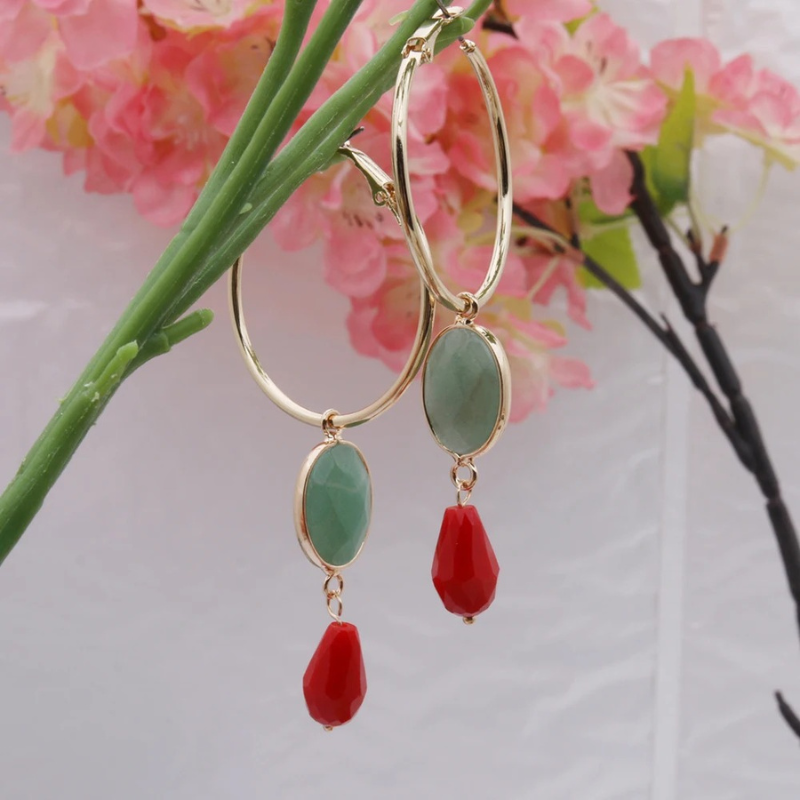 Boucles d'oreilles créoles dorées avec pierres colorées