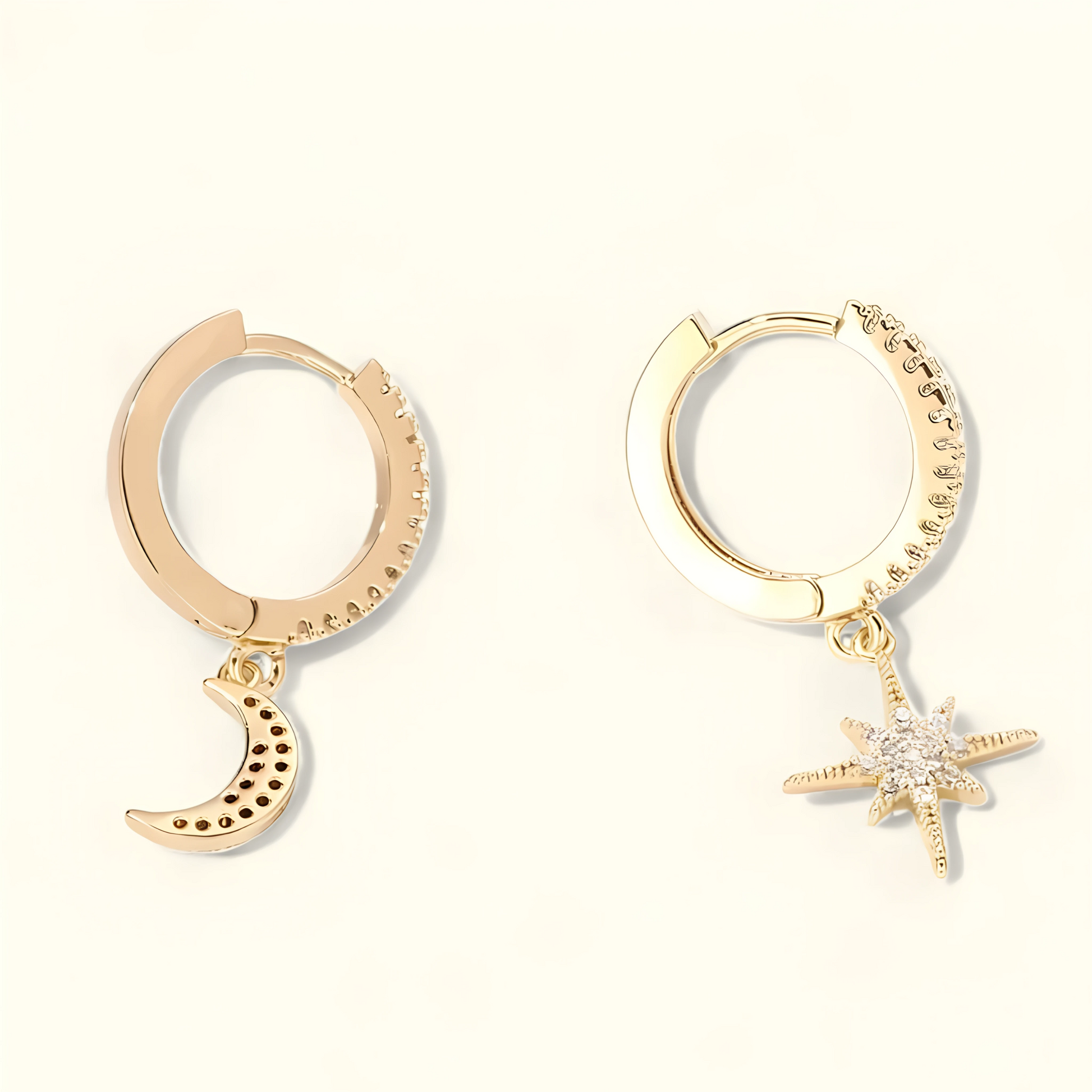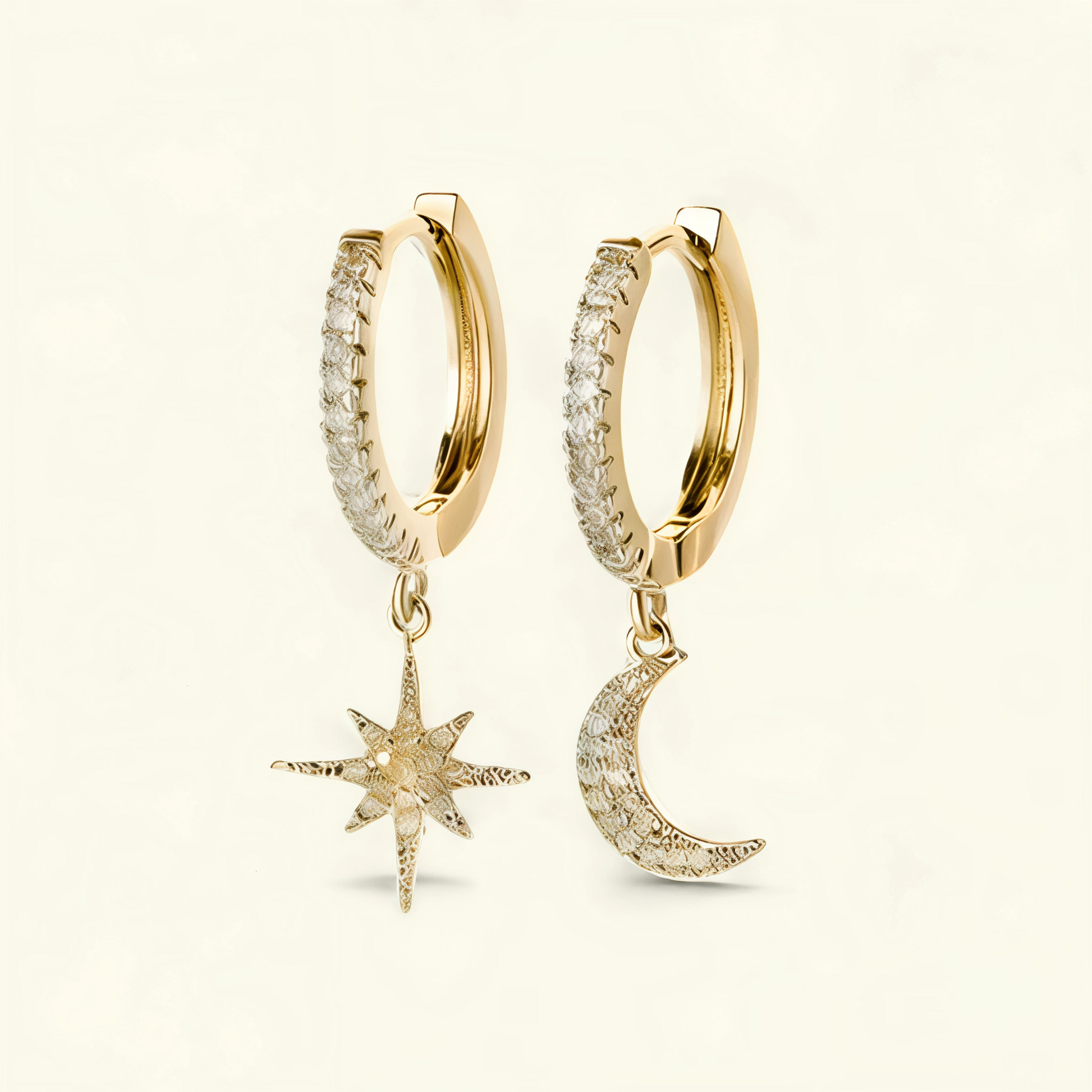 Boucles d'Oreilles en Hoops avec Étoile et Lune en Zircon
