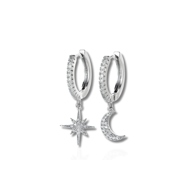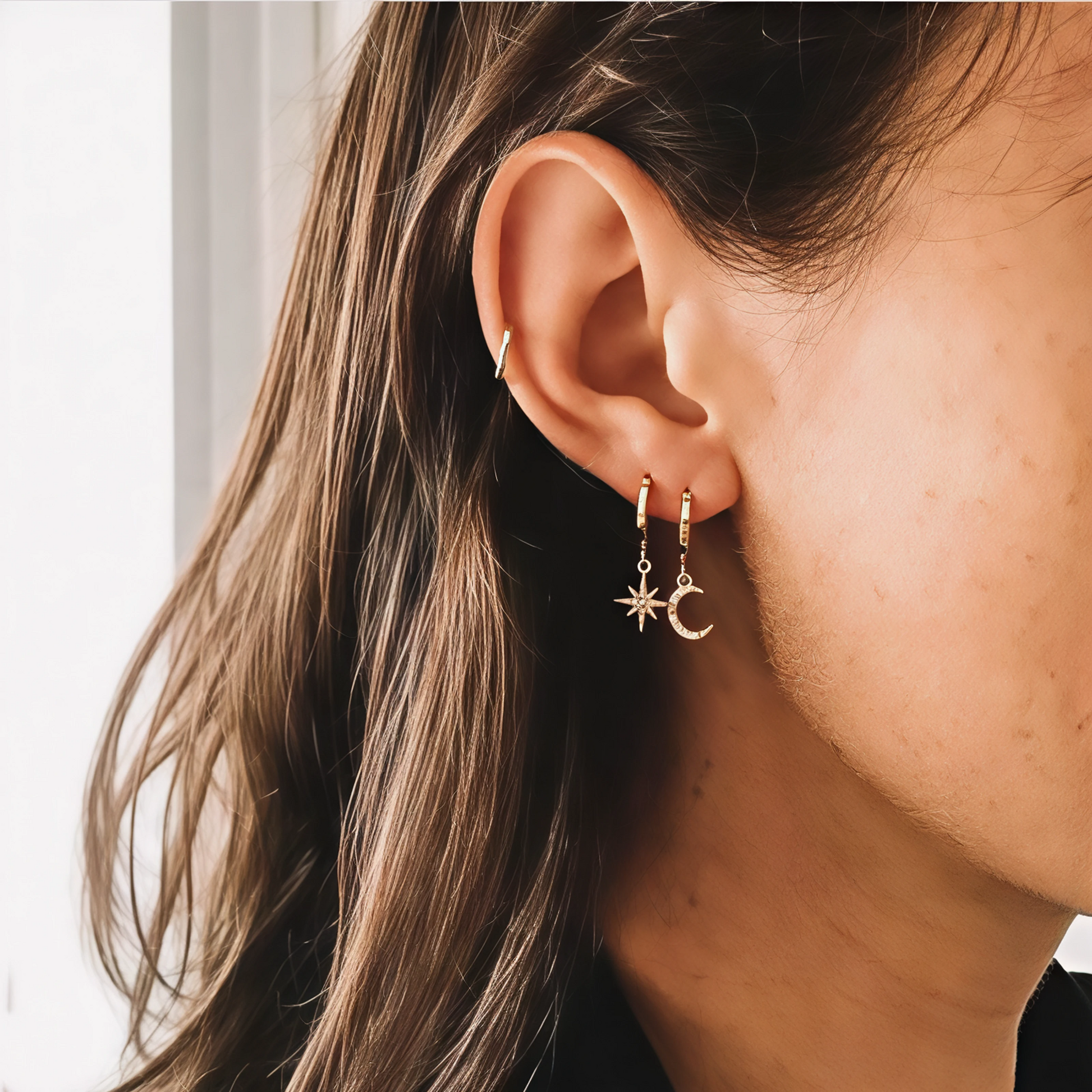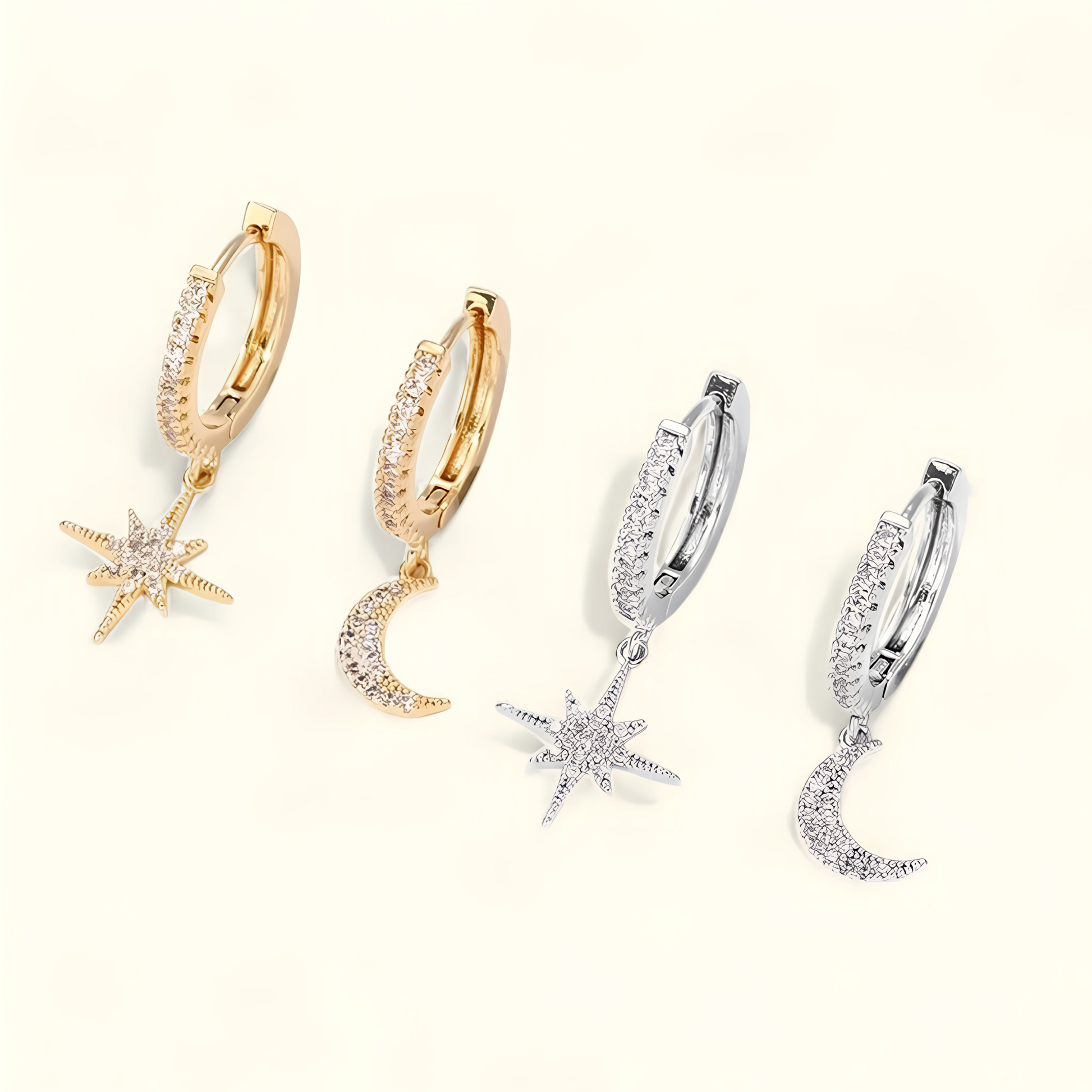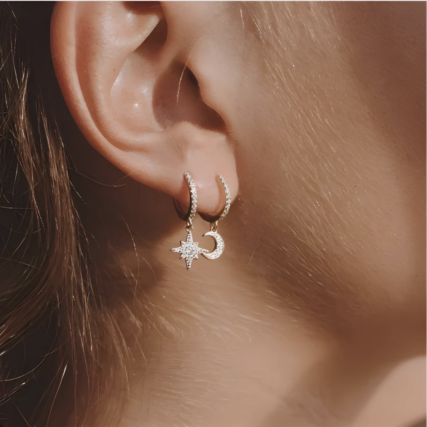 Éblouissantes et légères, ces boucles d'oreilles avec étoile et lune en zircon sont parfaites pour le quotidien, les événements festifs et les soirées.