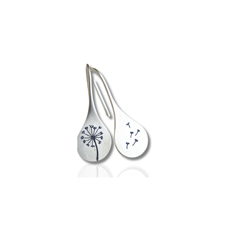 Boucles d'Oreilles Pendantes Rondes Pissenlit en Argent