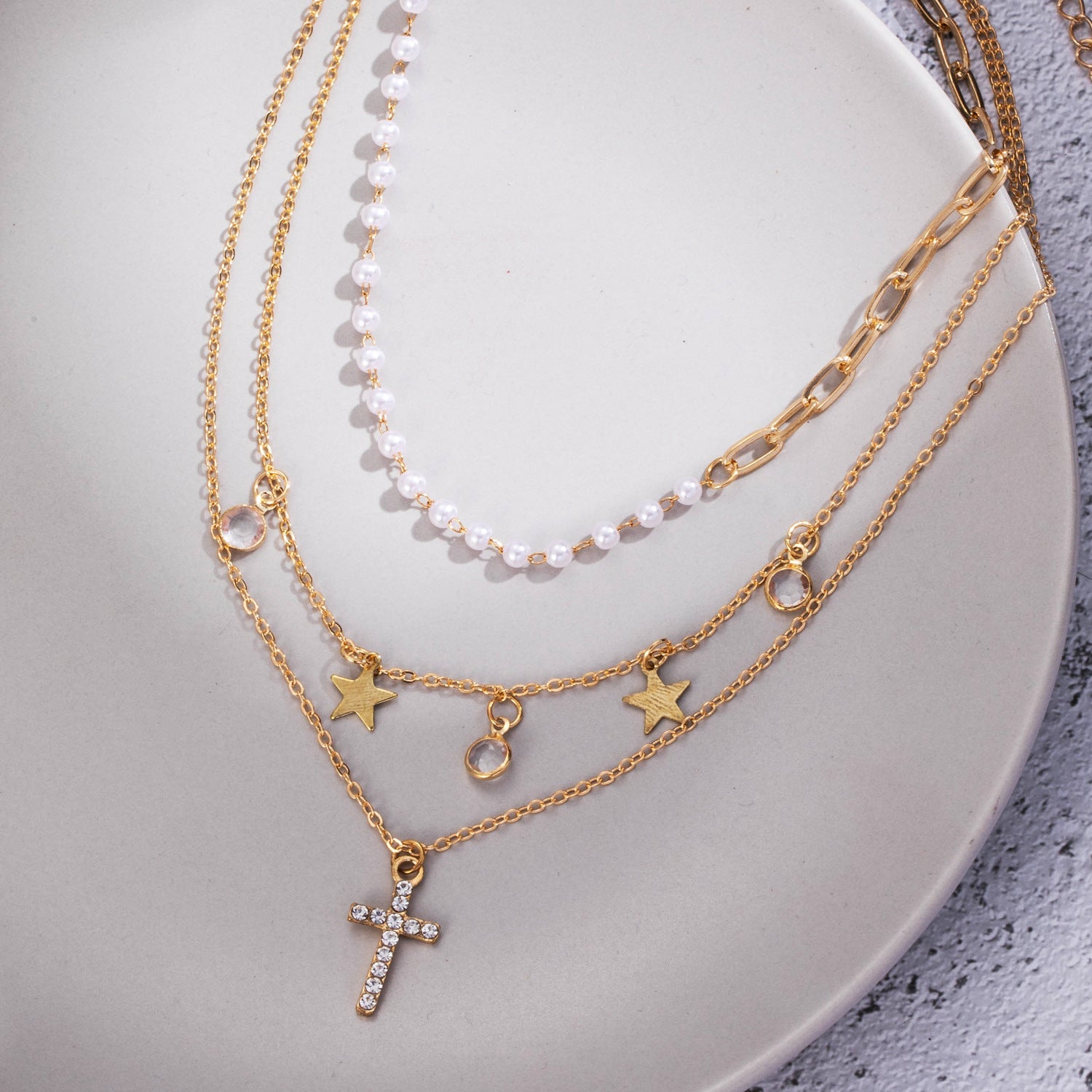 Colliers chaînes dorées pendentifs perles étoiles zircon – Léo